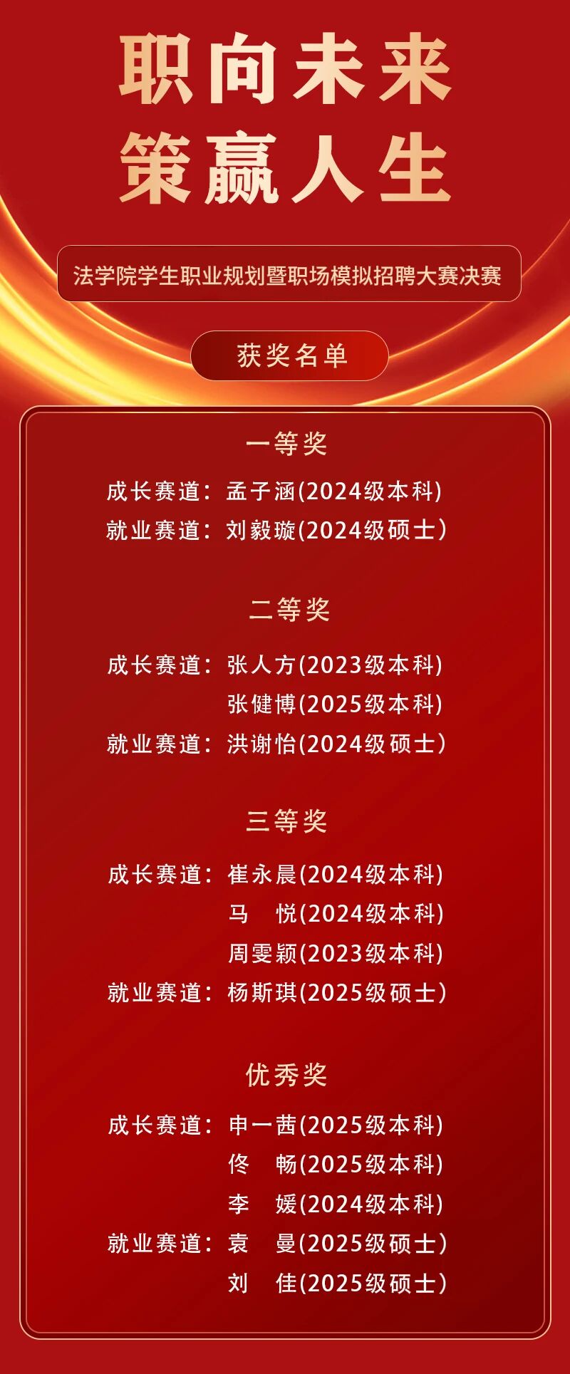 依据比赛规则,最终评选出成长赛道(本科生)一等奖1名,二等奖2名,三等奖3名,优秀奖3名;就业赛道(研究生)一等奖1名,二等奖1名,三等奖1名,优秀奖2名。本次大赛点燃大学生职业生涯规划热情,唤醒学生职业发展内生动力,切实提升就业创业核心素养,推动同学们深耕未来职业发展路径。此次赛事为成人网址就业指导工作锚定清晰方向,后续成人网址将不断深化职业生涯规划教育,以系统化指导与常态化培育,为学生实现高质量充分就业夯实稳固基础。