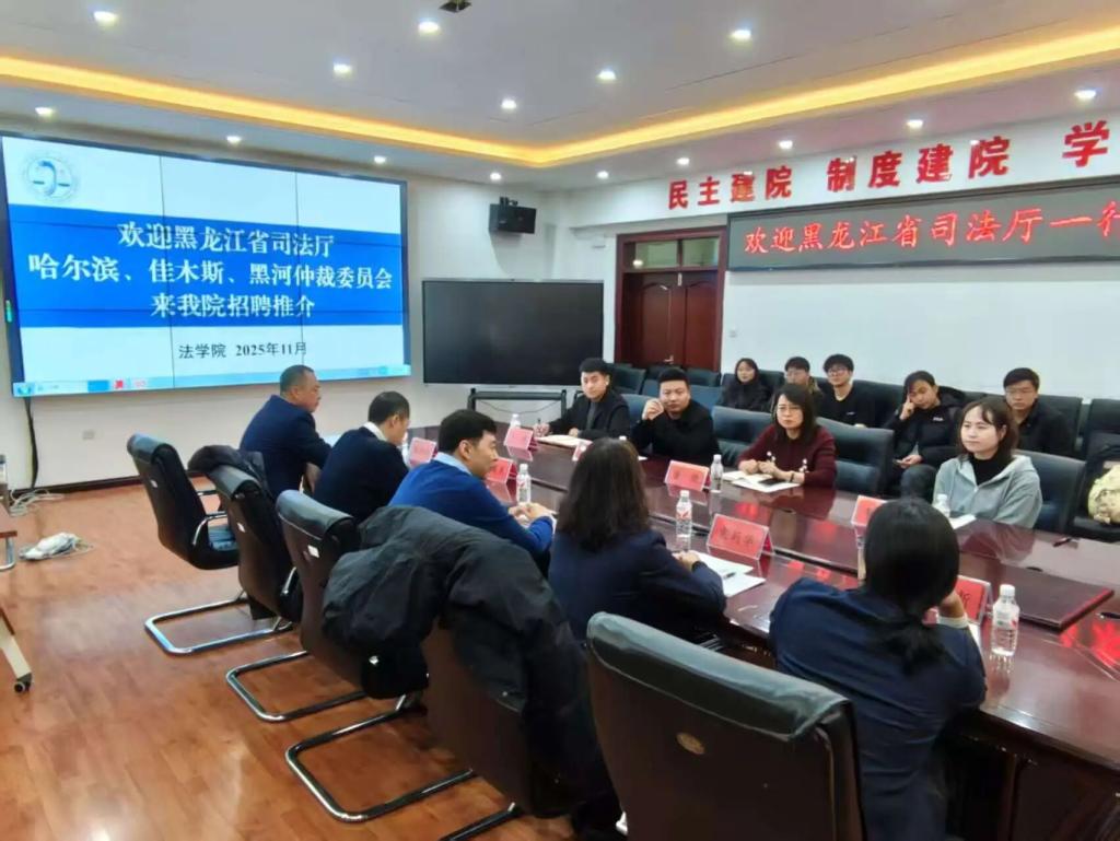 为进一步推动法律硕士专业学位(国际仲裁)研究生培养项目建设,引导学生积极加入我省法律服务队伍,11月21日,黑龙江省司法厅公共法律服务管理一处处长曲东旭一行来我院进行座谈交流。成人网址