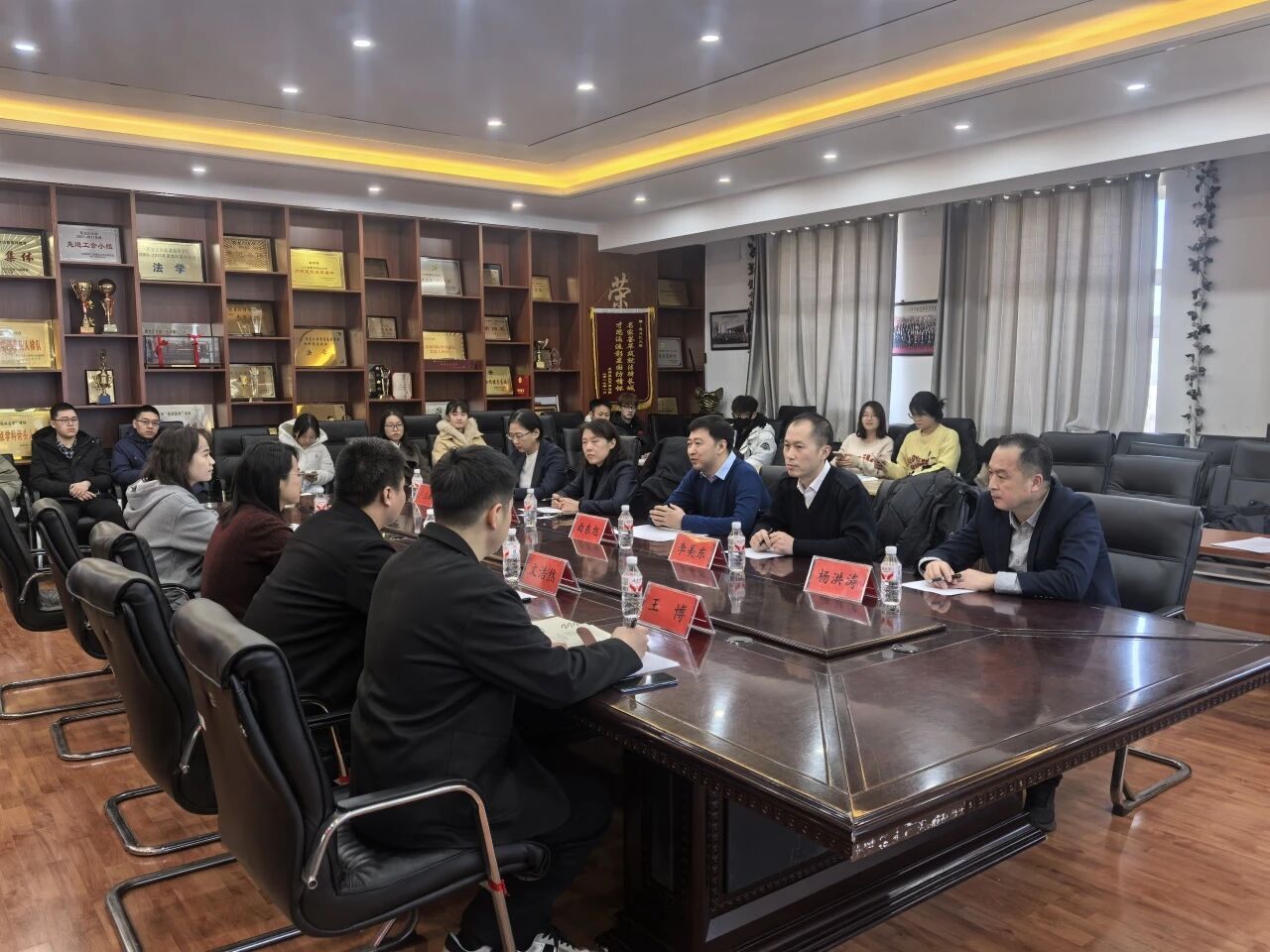 党委副书记董捷表示,感谢省司法厅带队来我院开展招聘单位双向对接,这不仅为我院学生积极搭建就业平台、创造更多就业岗位,更是深化协同育人的有力举措,共同促进仲裁秘书职业化和专业化建设。2026届研究生辅导员王博对法律硕士(国际仲裁)毕业生的学习就业情况进行简要介绍,研究生辅导员文浩然、李帅仪分别介绍了近年来硕博学生的就业趋势。