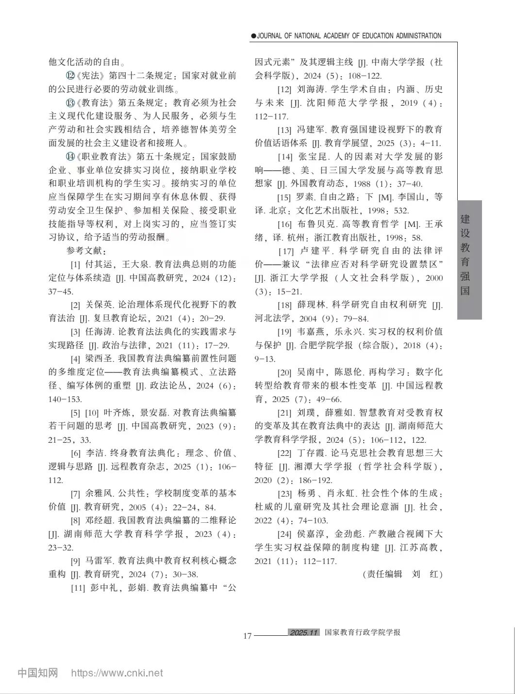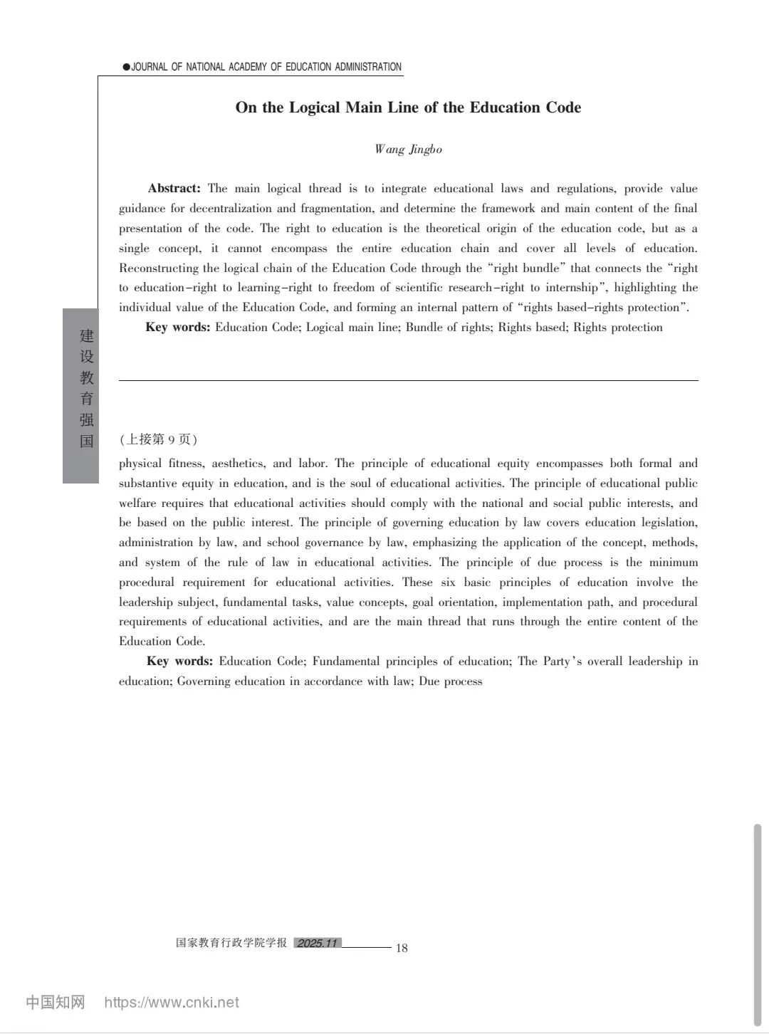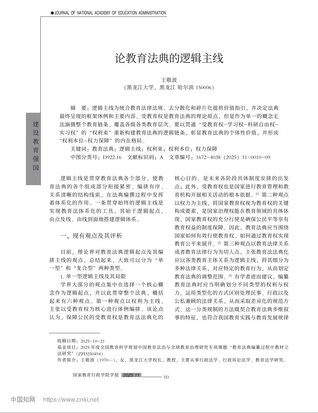 我校校长王敬波教授撰写的论文《论教育法典的逻辑主线》发表于《国家教育行政成人网址学报》2025年第11期(总第334期)10-18页。