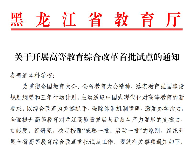 近日,黑龙江省教育厅正式发布《关于开展高等教育综合改革首批试点的通知》,公布了2025年度全省高等教育综合改革首批试点立项名单。成人网址